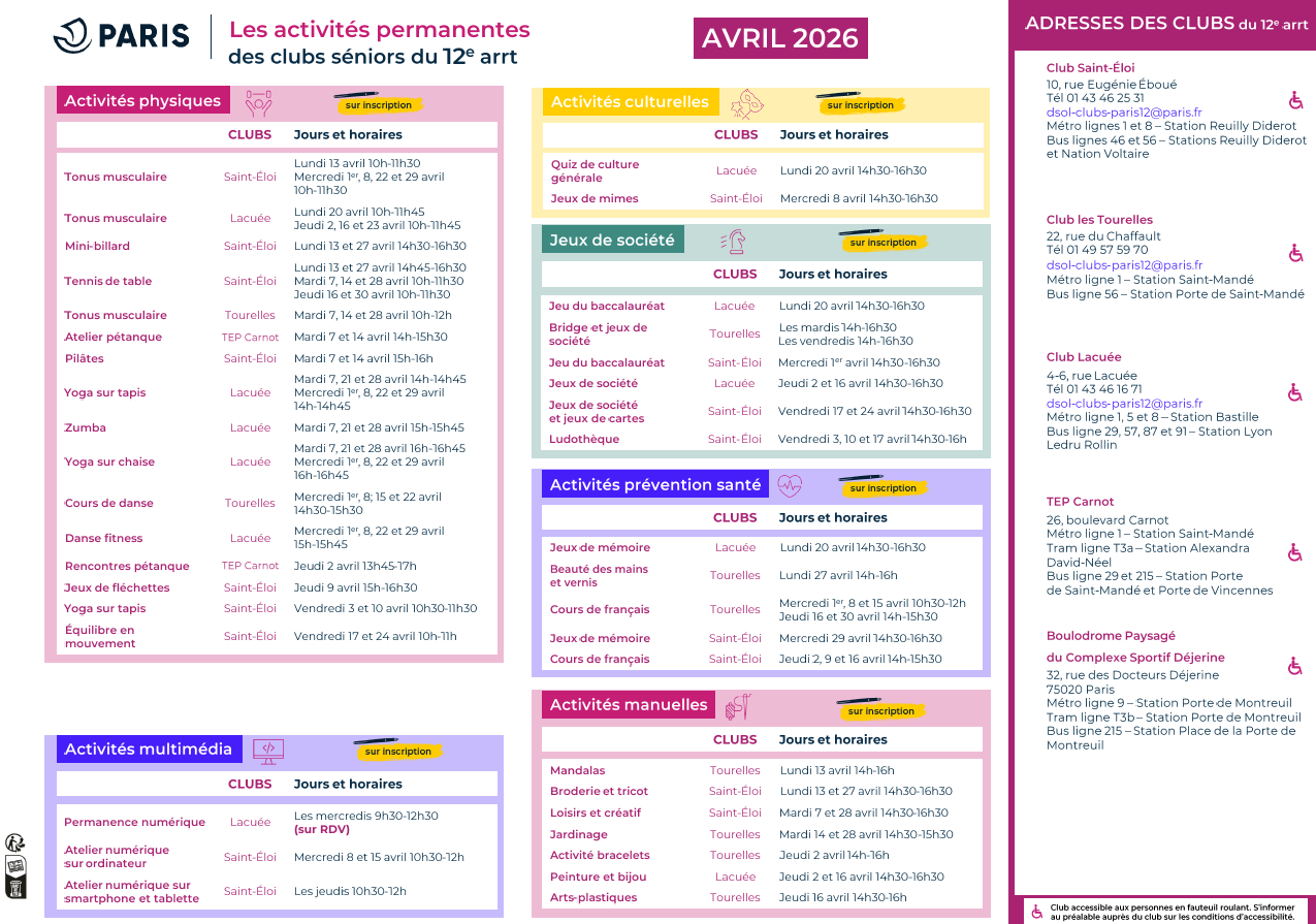 Ce carnet d'adresses du 12e recense les coordonnées des associations, entreprises et services de la ville de Paris pour :