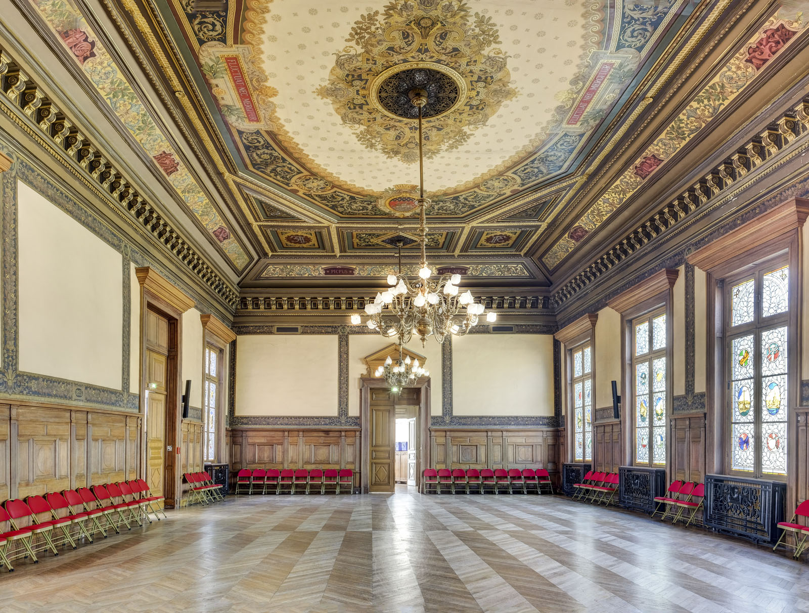 L’escalier d’honneur et son plafond orné d'une composition allégorique du peintre Eugène Thirion, sa salle des fêtes de plan rectangulaire et son salon d'honneur constituent les éléments d'architecture intérieure les plus notables, avec le salon de la France des Outre-mer.