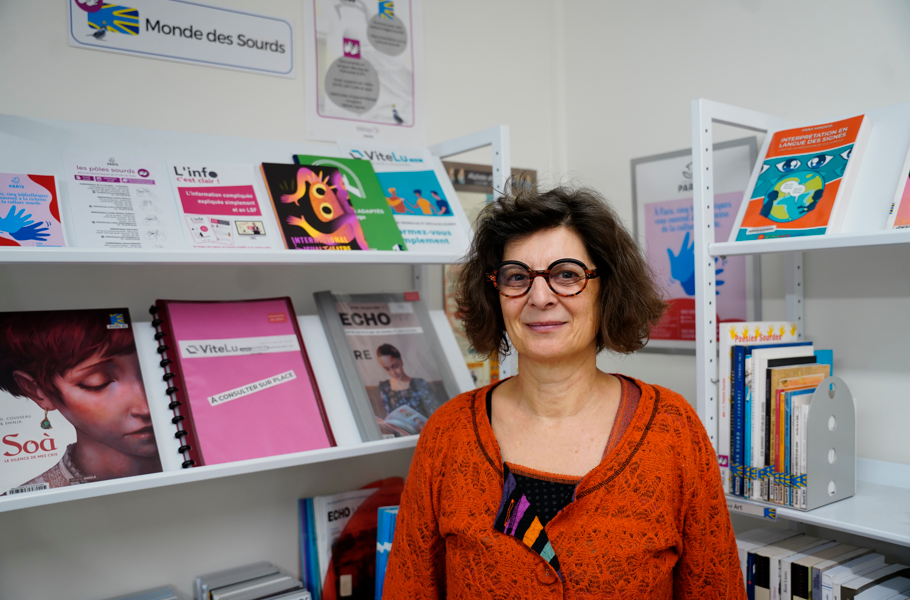 Anne Laurence Gautier, directrice de la bibliothèque Saint-Éloi, « Pôle Sourds » des bibliothèques de la ville de Paris.