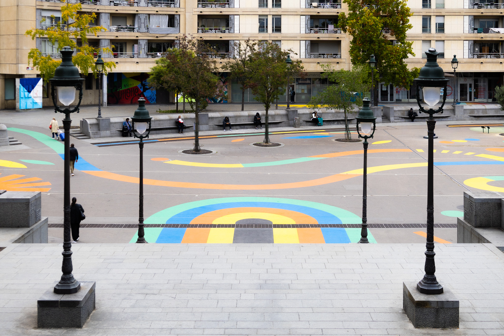 La place Henri Frenay qui jouxte la gare de Lyon est très passante. Pouvez-vous nous expliquer votre approche artistique de muraliste pour contribuer à construire une identité urbaine sur une place aussi fréquentée ?